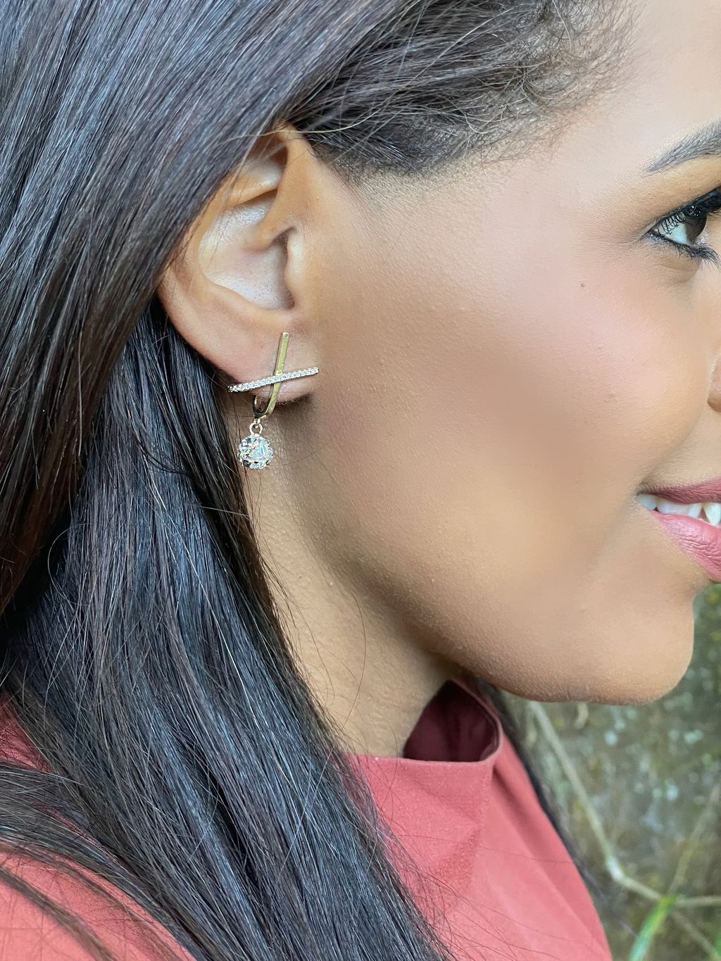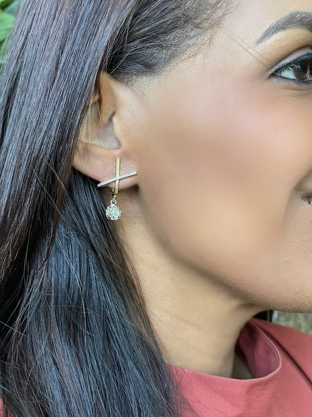 Nosso brinco na Semijoia em formato de X, todo cravejado, é aquela peça atemporal que transforma qualquer look com um toque de sofisticação.